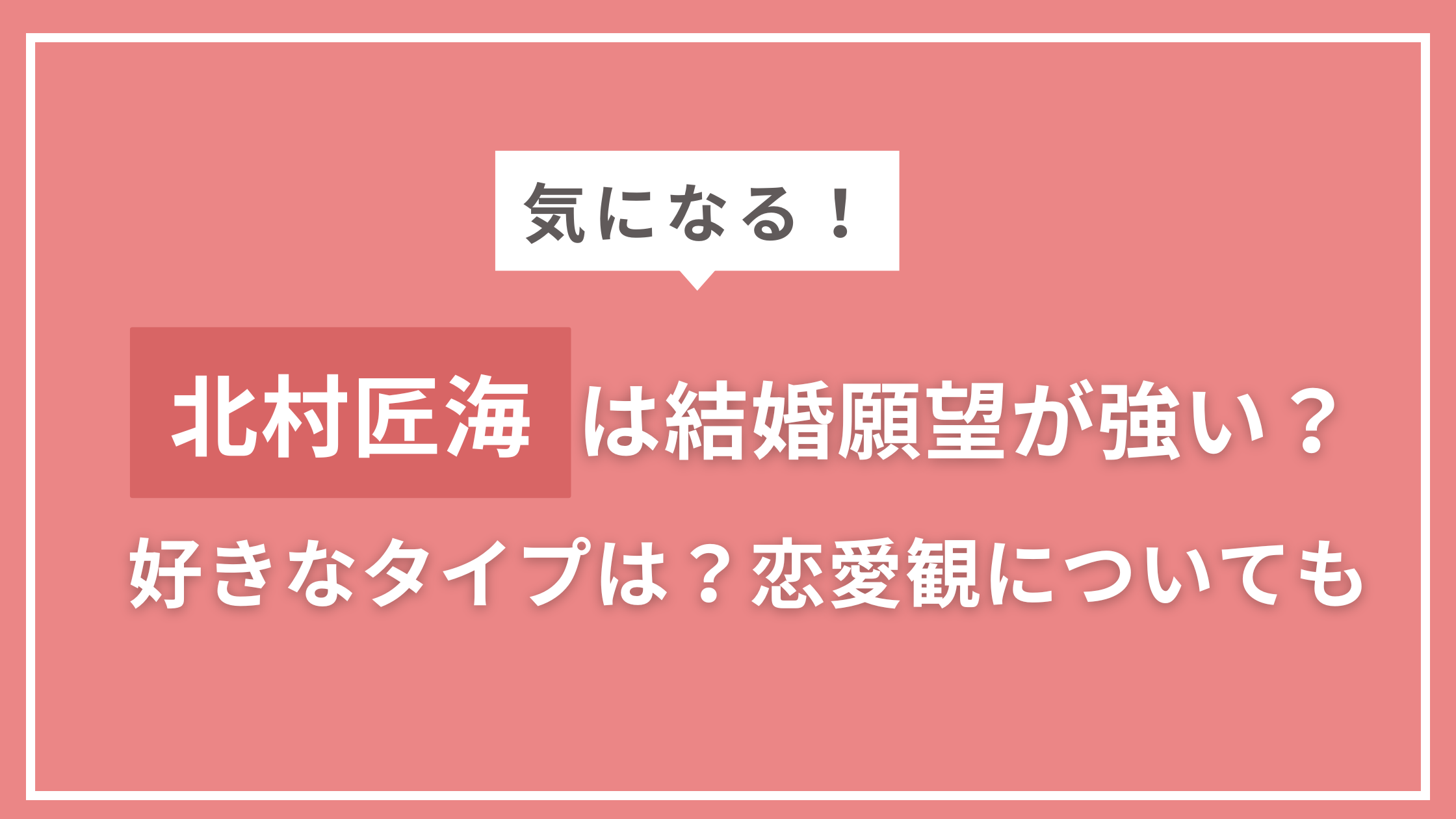 今回は、北村匠海さんの結婚観から恋愛観、好きなタイプについて紹介しています。