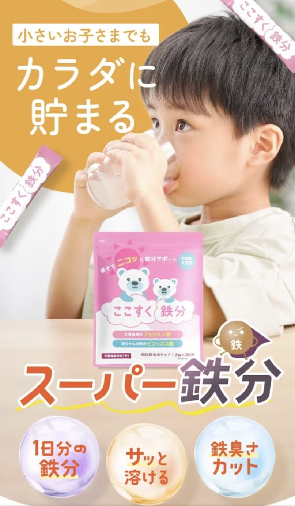 『ここすく鉄分』は、1歳から6歳の子どもの鉄分不足をサポートするために開発された商品になっています。