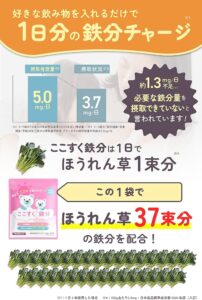 『ここすく鉄分』は、個包装になっていて、手軽に食べ物や飲み物に入れるだけでいいので、鉄分の摂取を習慣化にしやすいことがあります。