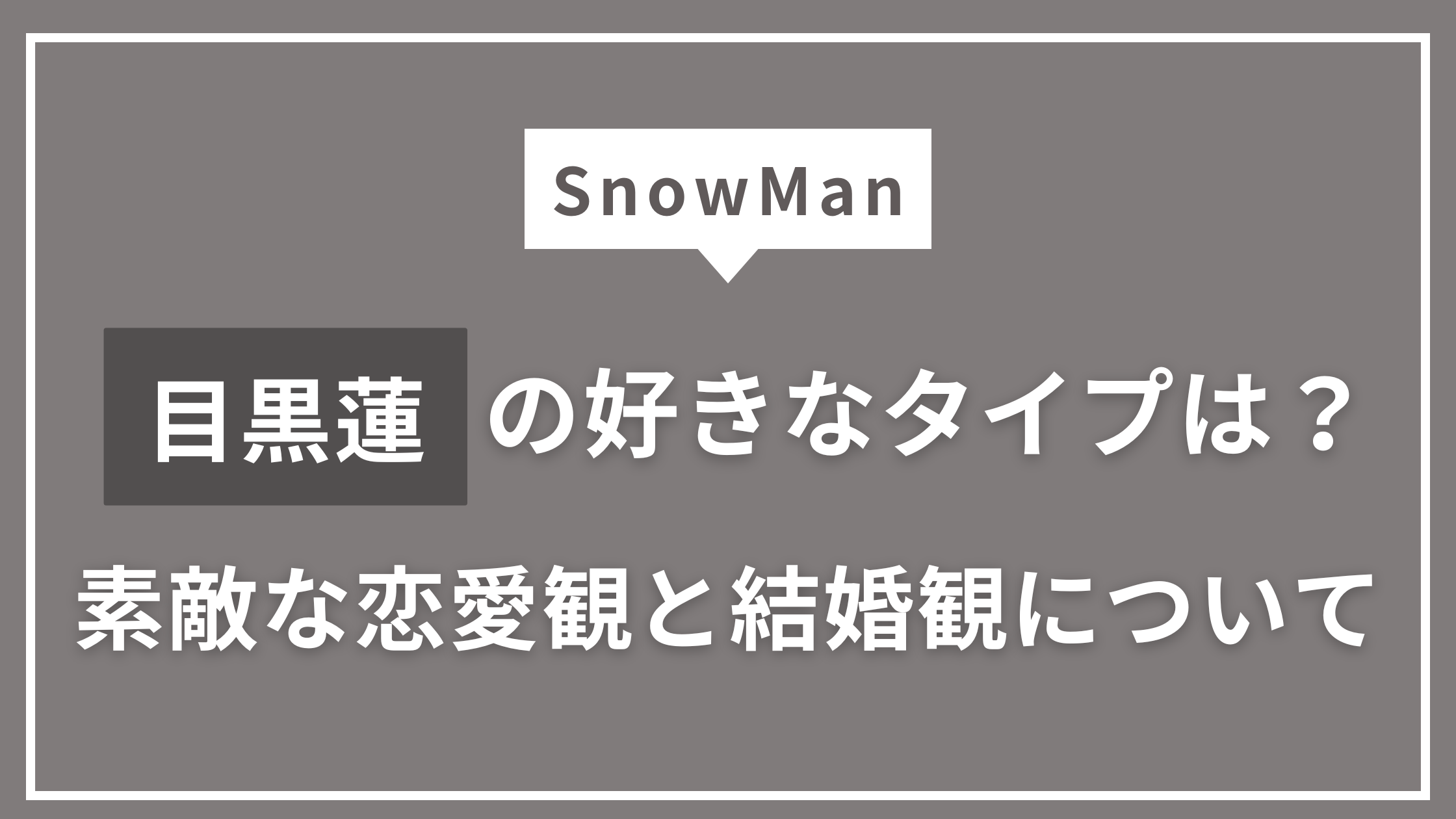 本記事では、目黒蓮さんの好きなタイプから恋愛観、さらに結婚観まで、これまでの発言をもとにわかりやすくまとめてご紹介します。
