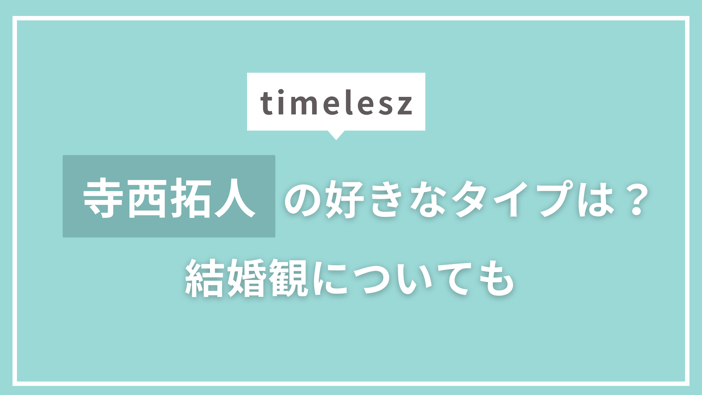 そんな寺西拓人さんの、「好きなタイプってどんな人?」「結婚についてはどう考えてるの?」なんて気になる方も多いはず。